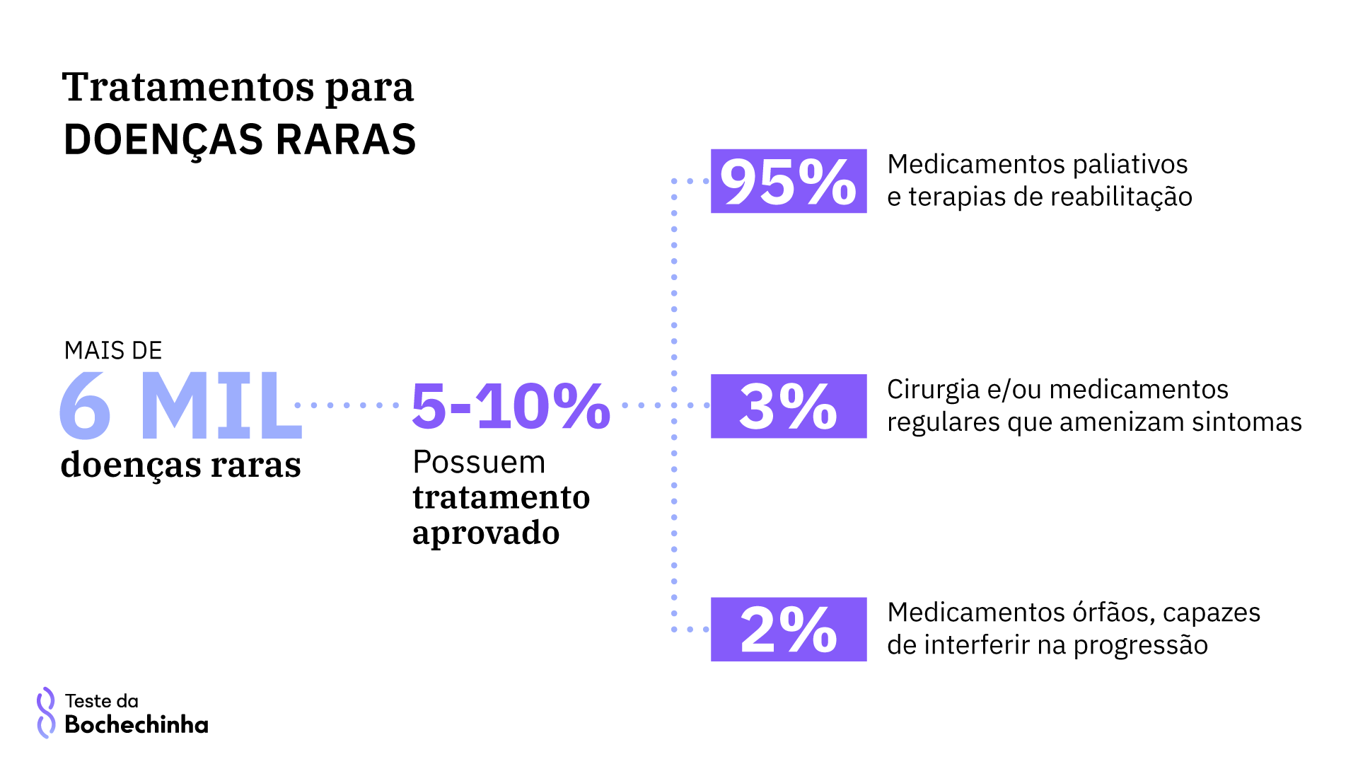 Para a maioria das doenças raras ainda não existe cura, mas, felizmente, centenas delas já têm tratamento disponível para evitar ou retardar a progressão da doença.