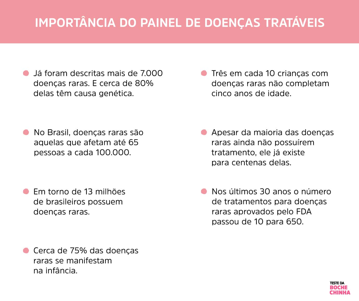 As doenças do painel fazem parte do grupo de doenças raras com causa genética.